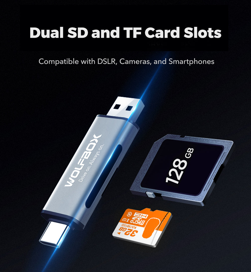 WOLFBOX 2-in-1 Card Reader with USB-C&USB-A Interface