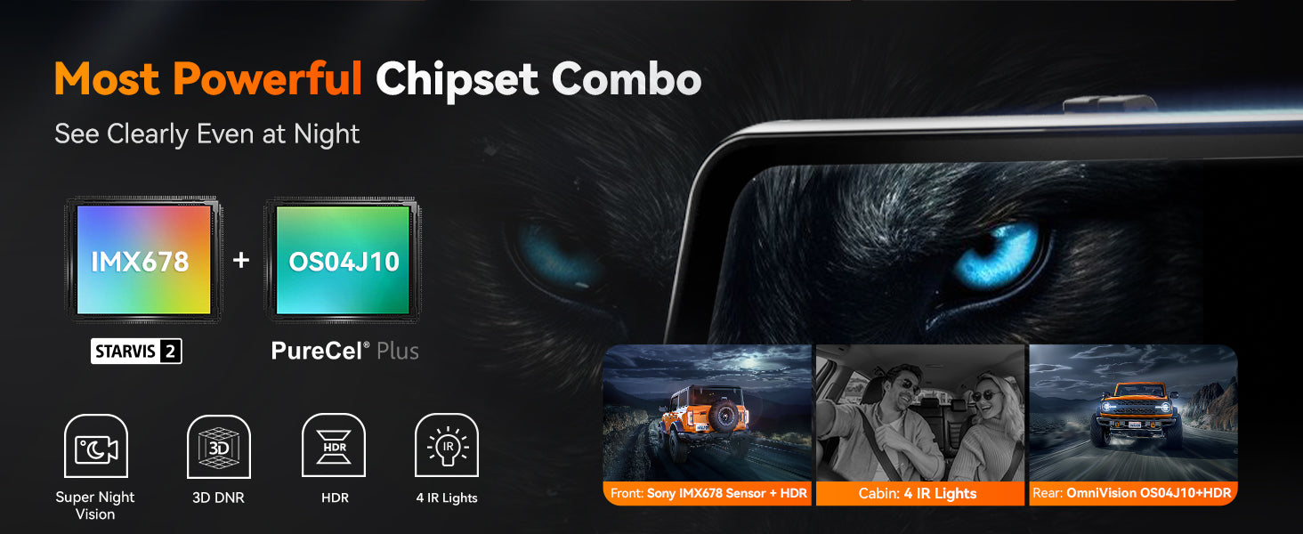 - Most Powerful Chipset Combo for Crystal-clear Video Unlock the best performance with the advanced Sony IMX678 and OmniVision OS04J10 sensors. Capture smooth, crystal-clear video day or night, ensuring your recordings are always sharp and reliable.
