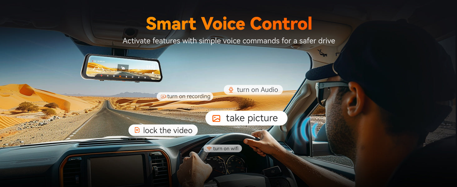 - Hands-Free Operation with Voice Control Take control with your voice! Use hands-free voice commands to operate the dash cam, keeping your focus on the road and your driving safer than ever.