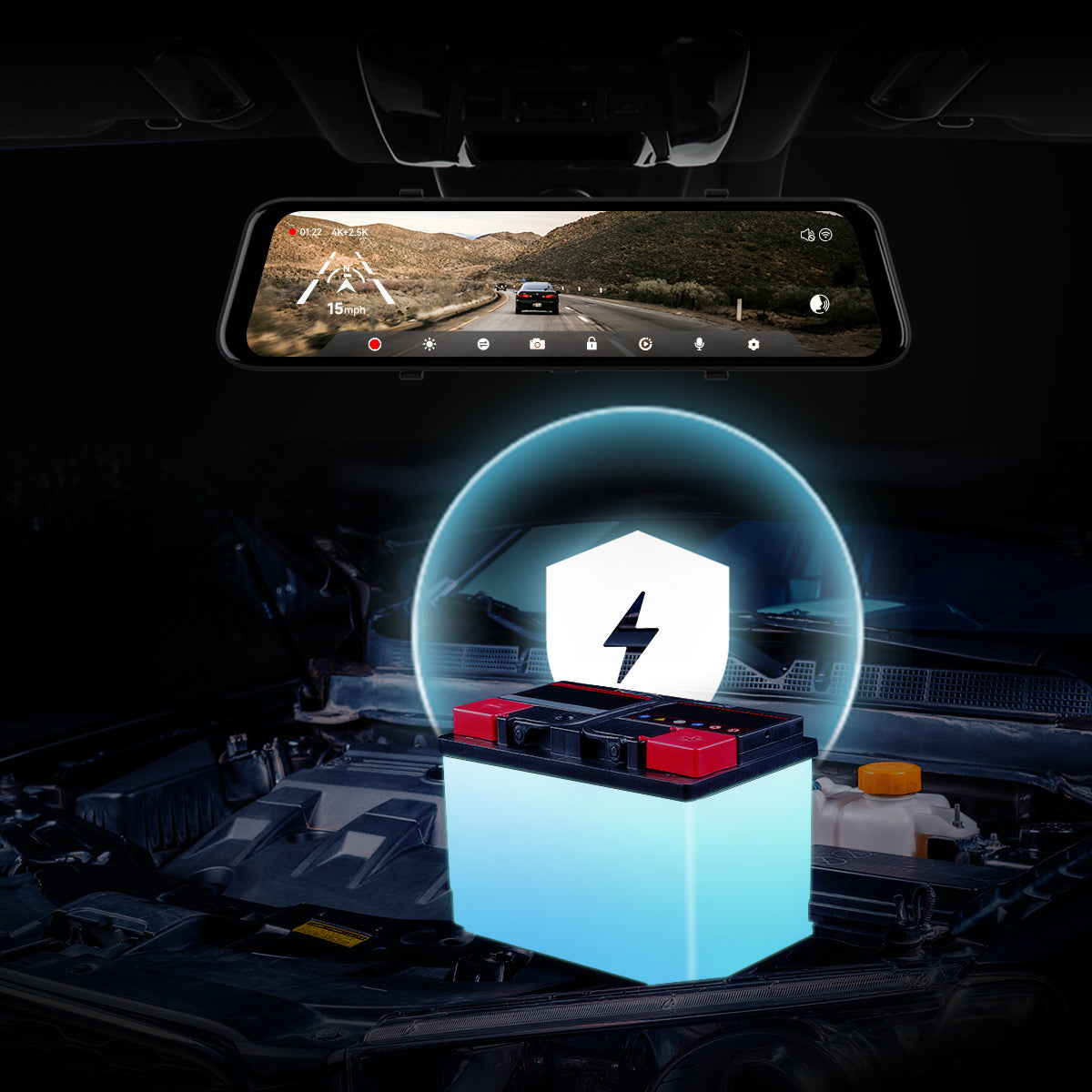 With the use of a hardwire kit, the dash cam automatically cuts power when the vehicle’s voltage reaches 12V, safeguarding your car battery from excessive drain.