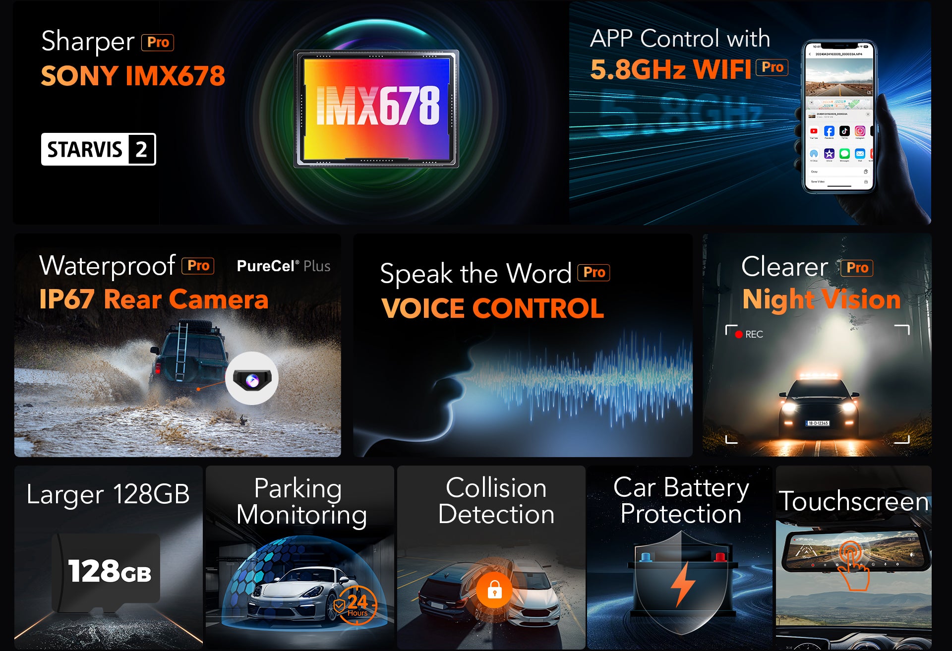 - Superior Imaging with IMX678 SensorExperience crystal-clear footage with 8MP resolution powered by the IMX678 sensor, delivering exceptional clarity in both front and rear views, even in broad daylight.