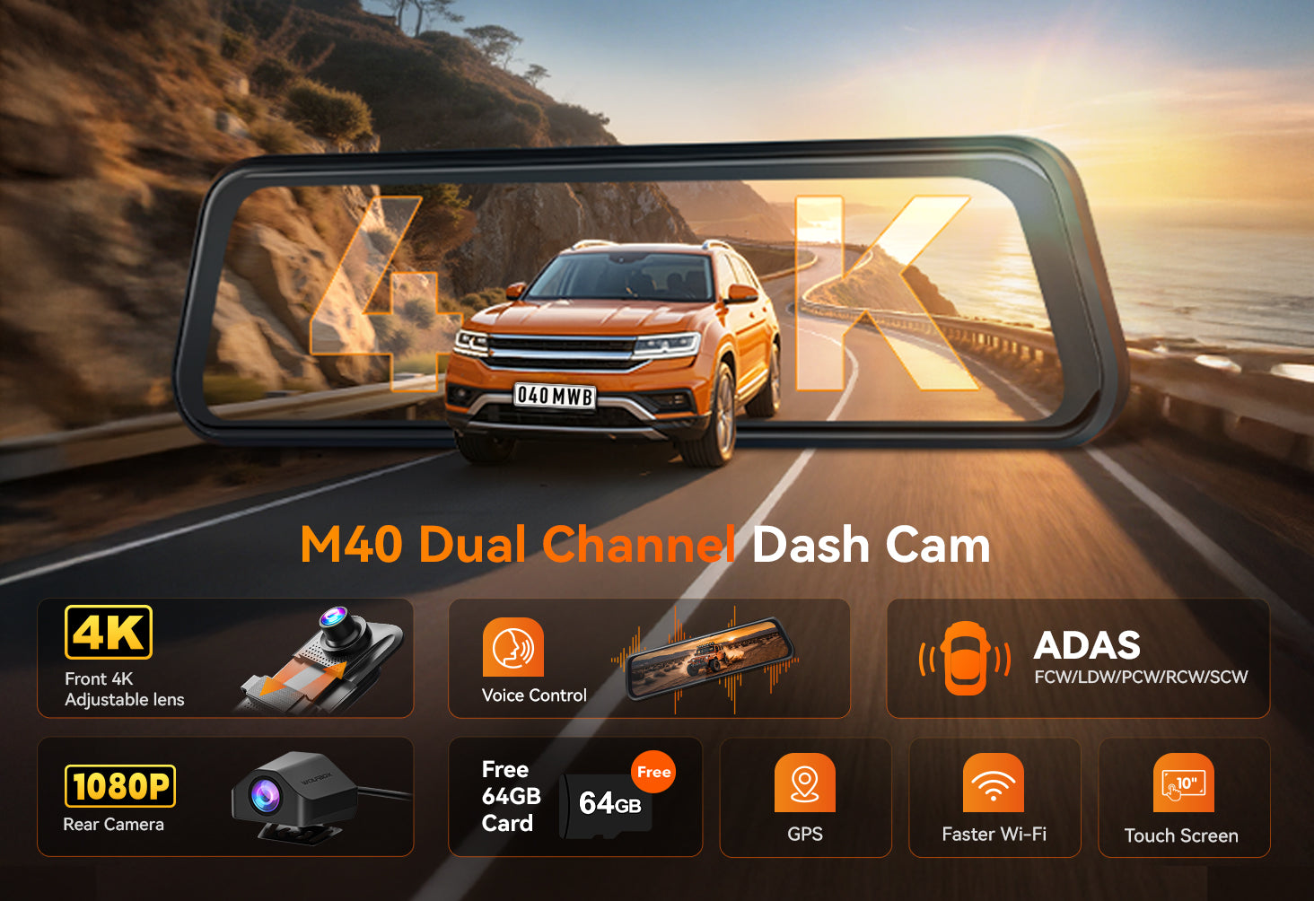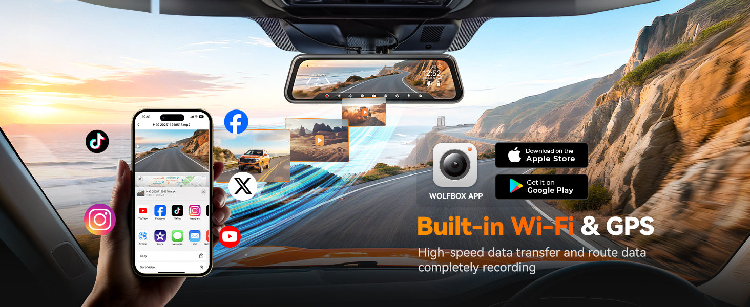 WOLFBOX M40 4K 10" ADAS WIFI Touch Screen Mirror Dash Cam