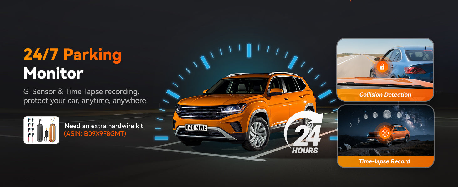 - Parking Monitoring Mode – Provides round-the-clock vehicle protection while parked (hardwire kit required)