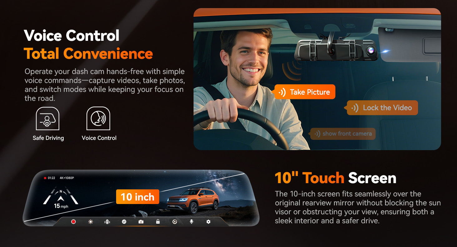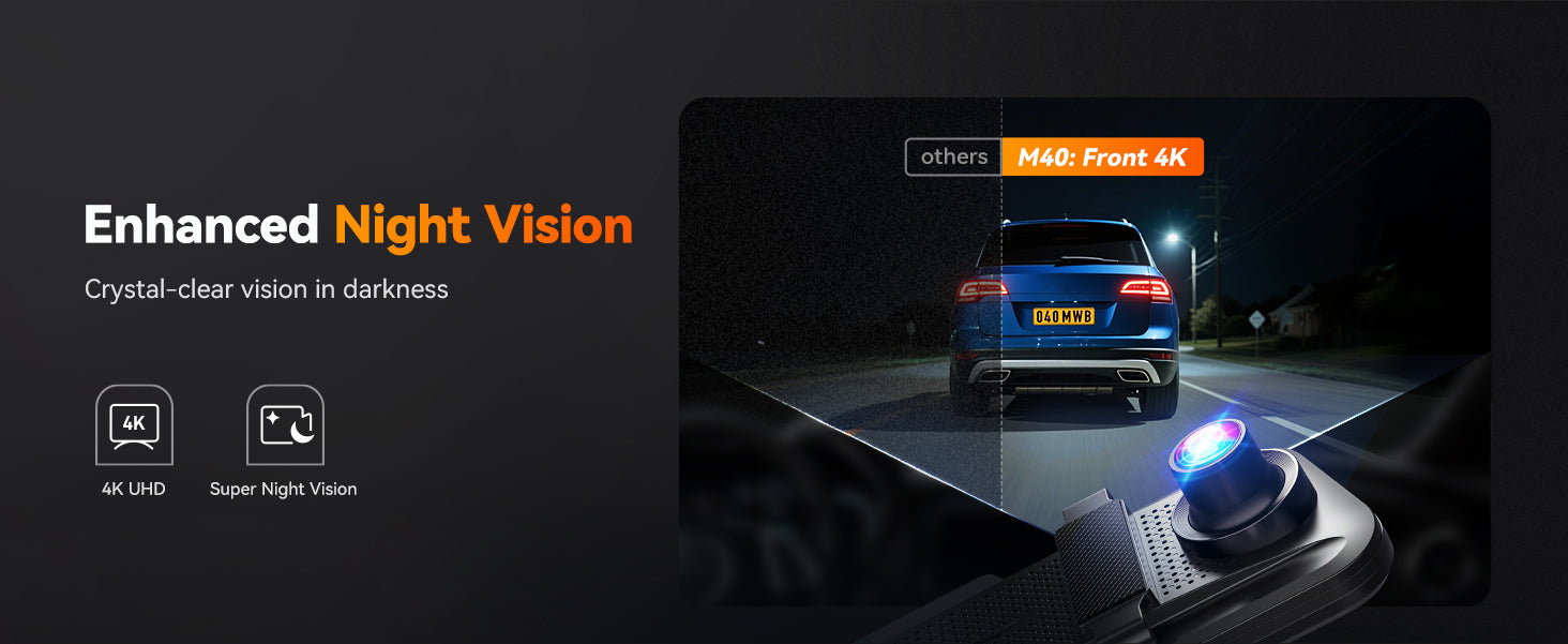 - 4K Front + 1080P Rear Dual Recording –Capture clear, detailed footage of the road ahead and behind for complete driving safety